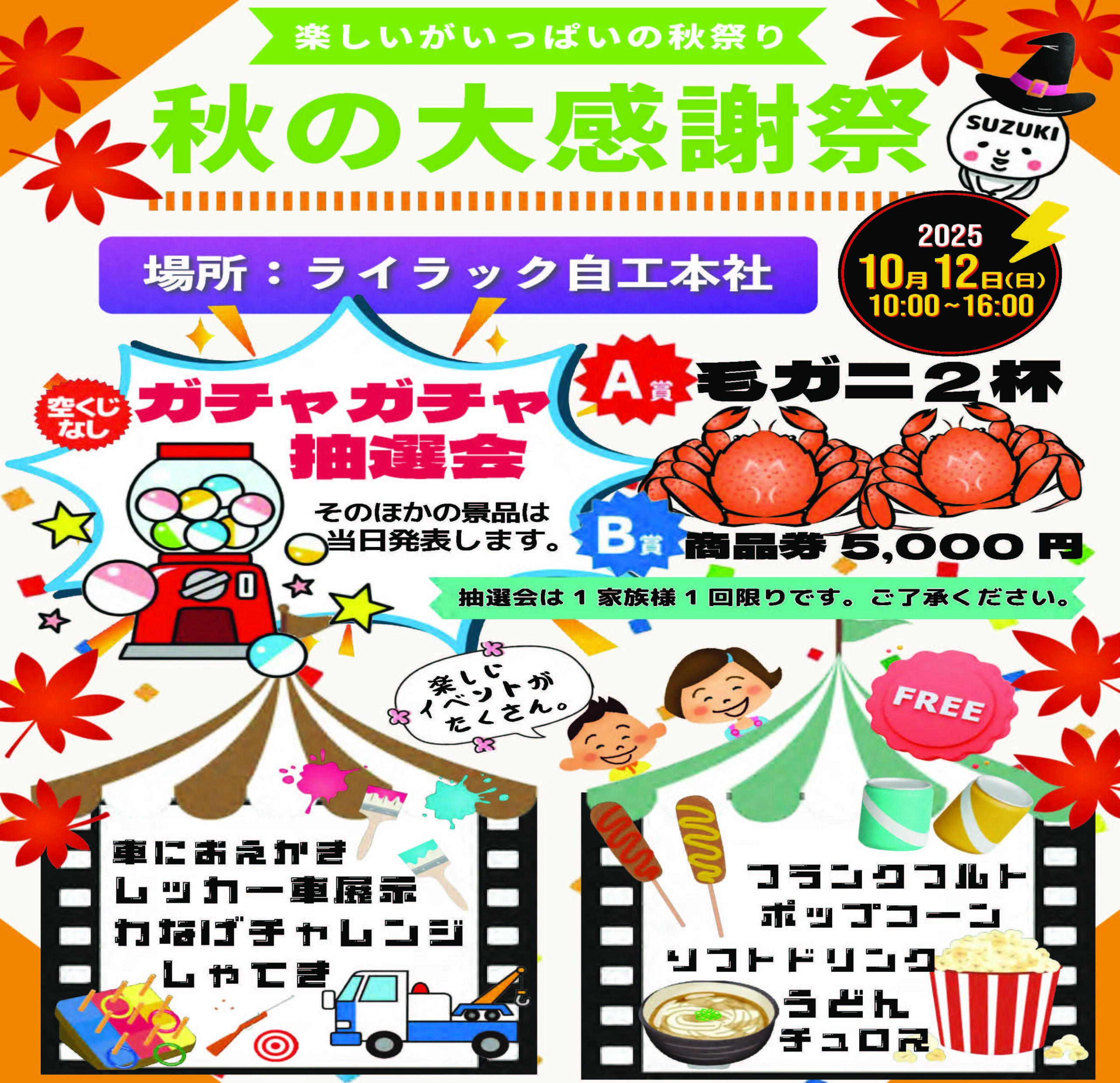 2025年10月12日(日)、日頃のご愛顧を感謝し「2025年 秋の大感謝祭」を開催いたします!