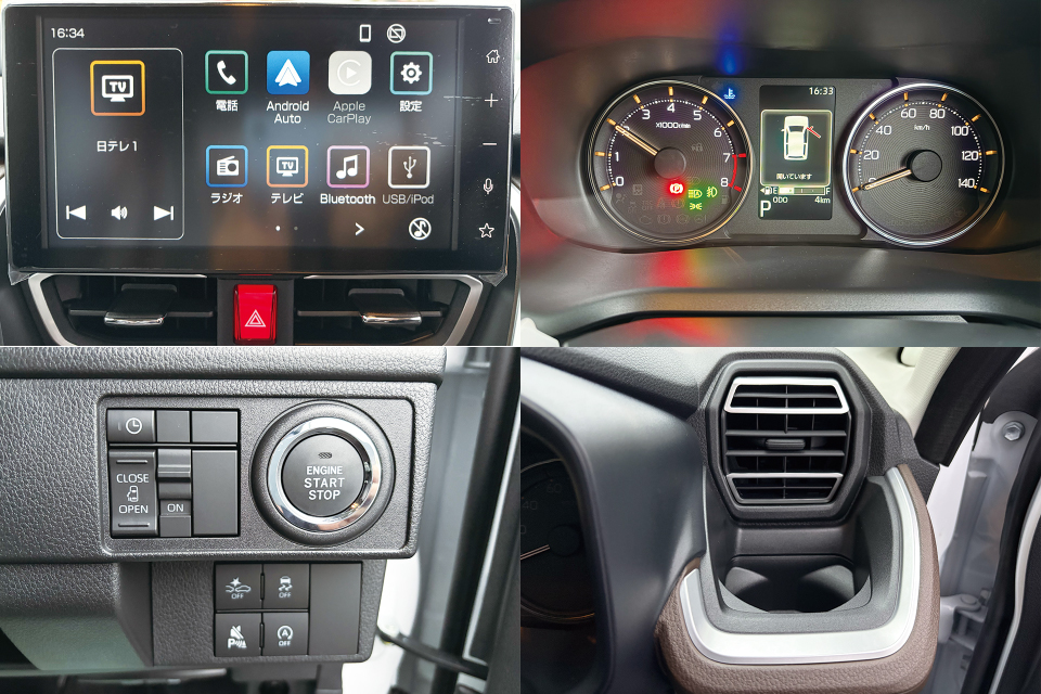 電動パーキングブレーキやオートブレーキホールド(RS・G標準装備)が、渋滞や信号待ちでのストレスを軽減。さらに、ムーヴは横滑り防止機能やトラクションコントロールも装備しており、雨の日や滑りやすい路面でも安心して走れます。