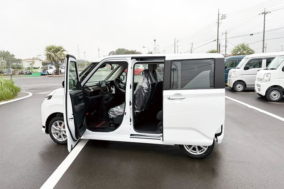 電動パーキングブレーキやオートブレーキホールド(RS・G標準装備)が、渋滞や信号待ちでのストレスを軽減。さらに、ムーヴは横滑り防止機能やトラクションコントロールも装備しており、雨の日や滑りやすい路面でも安心して走れます。